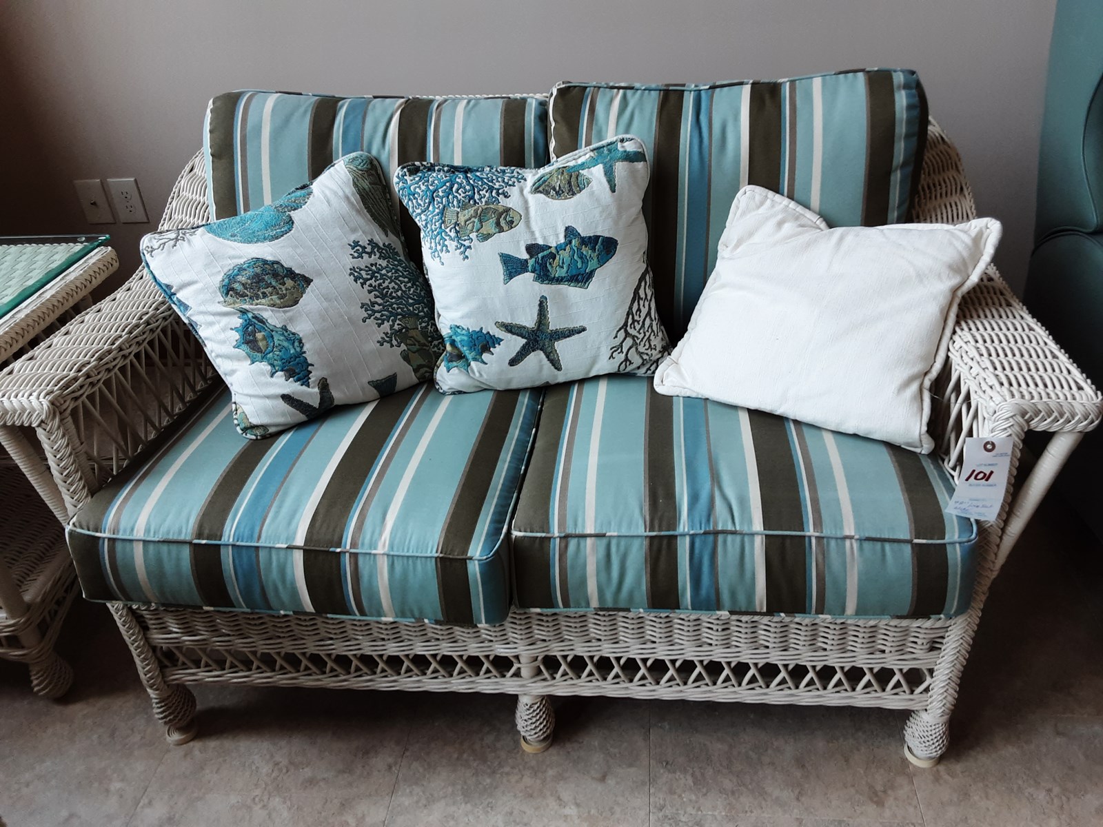 Wicker Items: Loveseat 48", End Table 23"x 26", Sofa 72", Coffee Table 22"x 32", Chairs (4), Hall Table, Server; Leather Chair Green; Area Rug 53"x 96"; Computer Desk w/Top, Filer & Chair; Lamp Stand; Hale Furniture Table – (2) extensions & (4) Chairs; Vizio flatscreen TV’s- 32”, 48” & 50”; Harden Queen Poster Bed; (6)pc Harden King Size Bedroom Suite-Pineapple Poster Bed, (2) Night Stands, Wall Mirror & Dresser; Glass Top Table w/(4) Chairs; Oak Queen Anne Leg Dressing Table; King size bedding set; Assort. Pictures & Frames; Oak Top Coffee Table w/ Sewing Machine Legs; Hall Table; (2) Small Drop Leaf TablesF; Bamboo Floor Lamp; Patio Wood Frame Suite Sofa & 2 Chairs; Dressing Room Chair; Swivel Rocker Blue; Armoir Book Case- (1) Cherry Stained, (1) Knotty Pine; Art Van 3 Cushion Couch 72" W/extra Cushion; (2) 5 Shelf Pine Book Case’s; Black & Decker Plastic Storage Unit; Kenmore Side By Side Fridge; Weber Spirit Grill; Oak 2 Drawer File Cabinet; Oak 5 Drawer Stand; Black & Decker Battery Leaf/Grass Blower; Sandy Koufax Signed Plaque; The Review Times President Kennedy Assassinated Newspaper; Vintage Magazines- Life, Look and Indy 500; Vintage Erector Set Box; Commode/Stand; Hall Tree; Table Lamps; Plant Stand; Shop Vac; Printer HP Office Jet 6978 W/cartridges; Wilson Tin; Propane Tank; Alum. & Platform Step Ladder; Keller 2 Step Ladder; TV Trays; Patio Chairs; Knickknacks; Hoover Sweeper; Misc. Tools; Glasses; Mugs; Kitchen Utensils; Dishes; Keurig Coffee Pot; Tupperware; Oneida Silverware; Misc. Decorative Plates; Inlaid Glass Coffee Table; White Marble Top Parlor Stand; Metal & Marble Floor Lamp; etc.