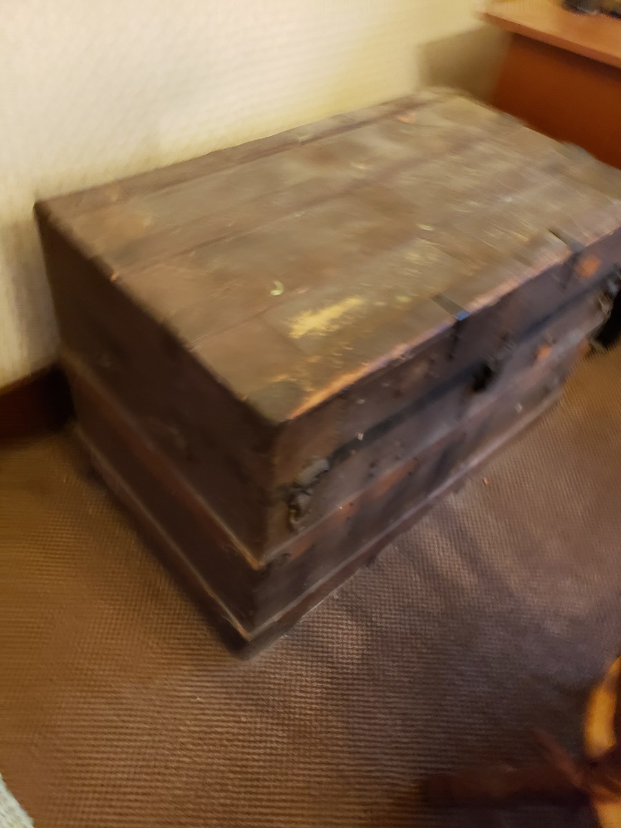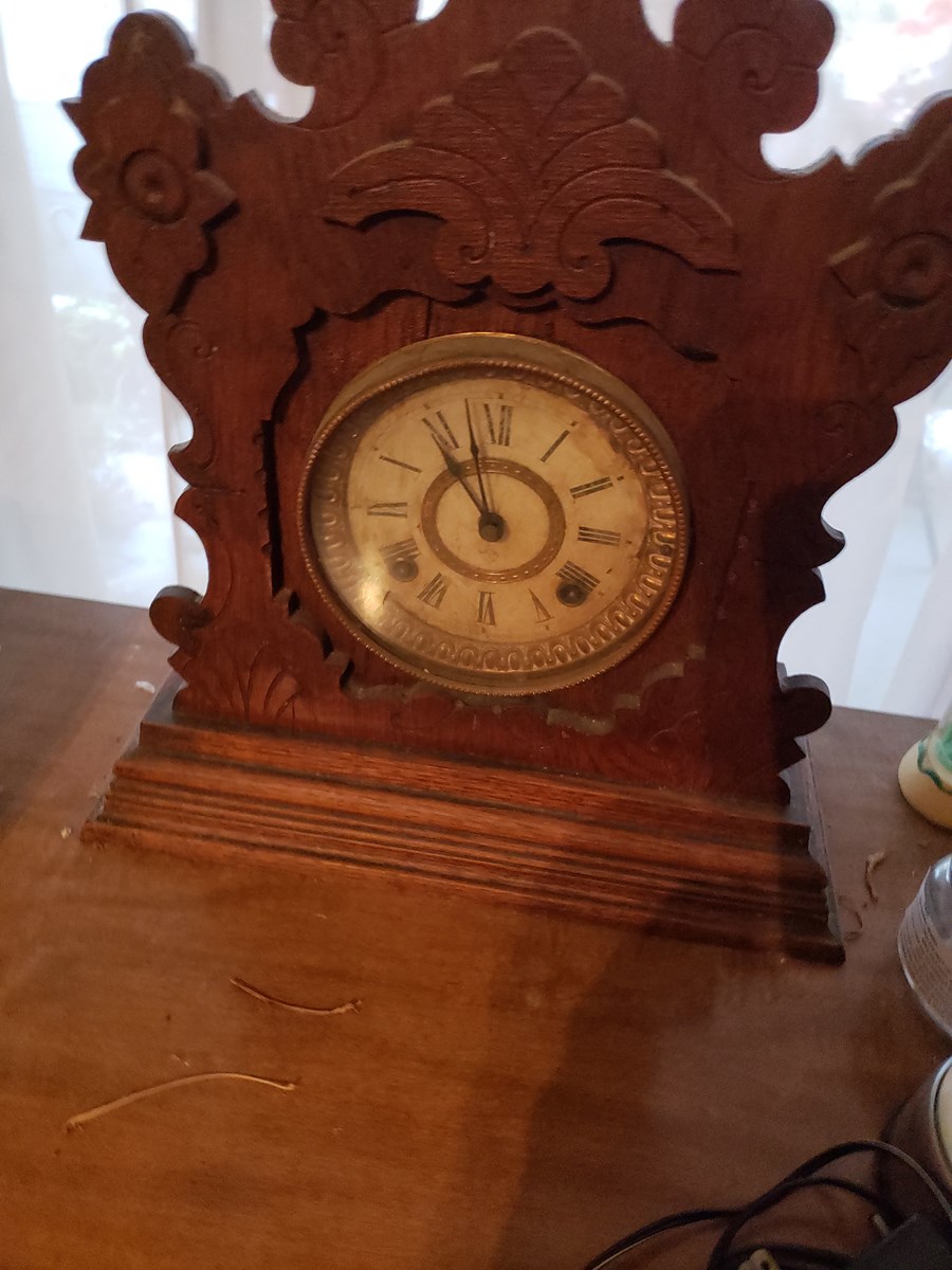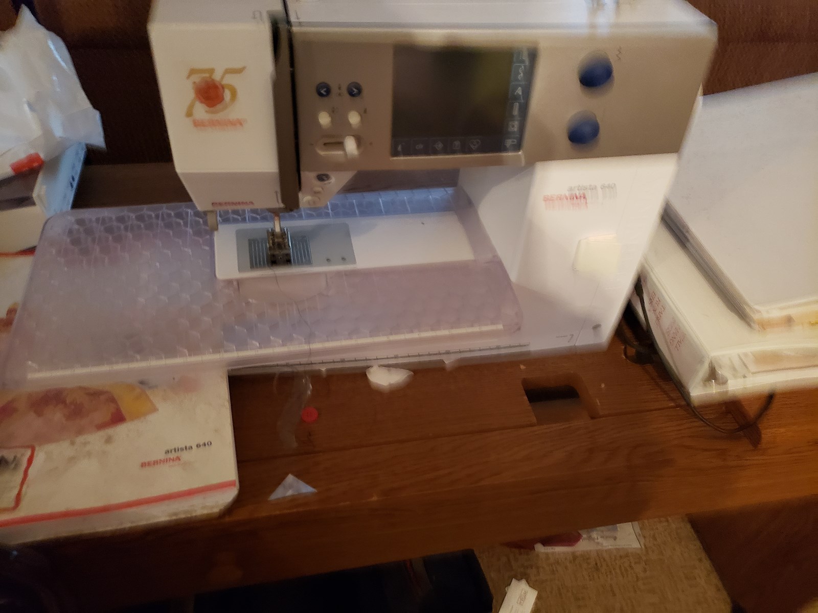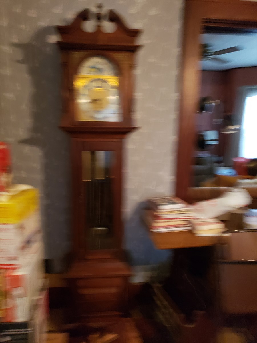 Oak (2pc.) step back 12 pane glass door cupboard; flat trunk; oak serpentine chest of drawers; grandfathers clock w/ German works; large copper kettle; square copper tub; Ansonia steeple clock; Session & Ingraham kitchen clocks; milk cans; (5) pitcher pump lamps; cast iron pig; food grinder (1) Keen Kutter; apple pealer; wash boards; brass fire fighter extinguisher; Singer tredle sewing machine; carpet beater; corn jobber; Dietz lantern; sleds; APPLIANCES: BERNINA ARTISTA 640 sewing machine w/ multi parts & attachments; Kenmore & Singer sewing machines; Eureka bagless sweeper; Kenmore apt. size freezer; Maytag flat top range; GE fridge/freezer; Oster air fryer; Kenmore washer; Amana dryer; Dell computer; 42” Samsung color flat screen TV; DVD; Nechi sewing machine; roaster; HOUSEHOLD: (3pc) bedroom suite; small selection of COSTUME JEWELRY; puzzles & few old games; Coca Cola crate; models ◦ Tonka Trucks ◦ Hot Wheel toys; peddlers wd. toy wagon; books; craft books; Yamaha spinet style organ & bench’ dinette table; wd. dining rm. table w/ (6) chairs; globe; small oil lamp; pie plates; green Depression; misc. glassware; totes of crafts, material; Christmas décor; wreaths; ect.