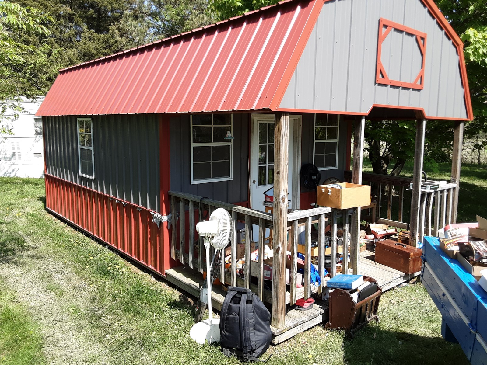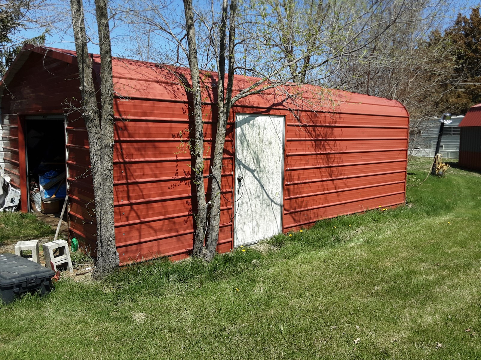 Building #1- 10’x12’ like new w/ dbl. front doors & extra height (new from The Granary 2020); #2- 18’x20’ all metal building w/ 8’ rollup door; #3- 11’x22’ all rib metal/ wd. frame w/ 6’x11’ porch & interior loft- wd. floor, frt. & rear doors;