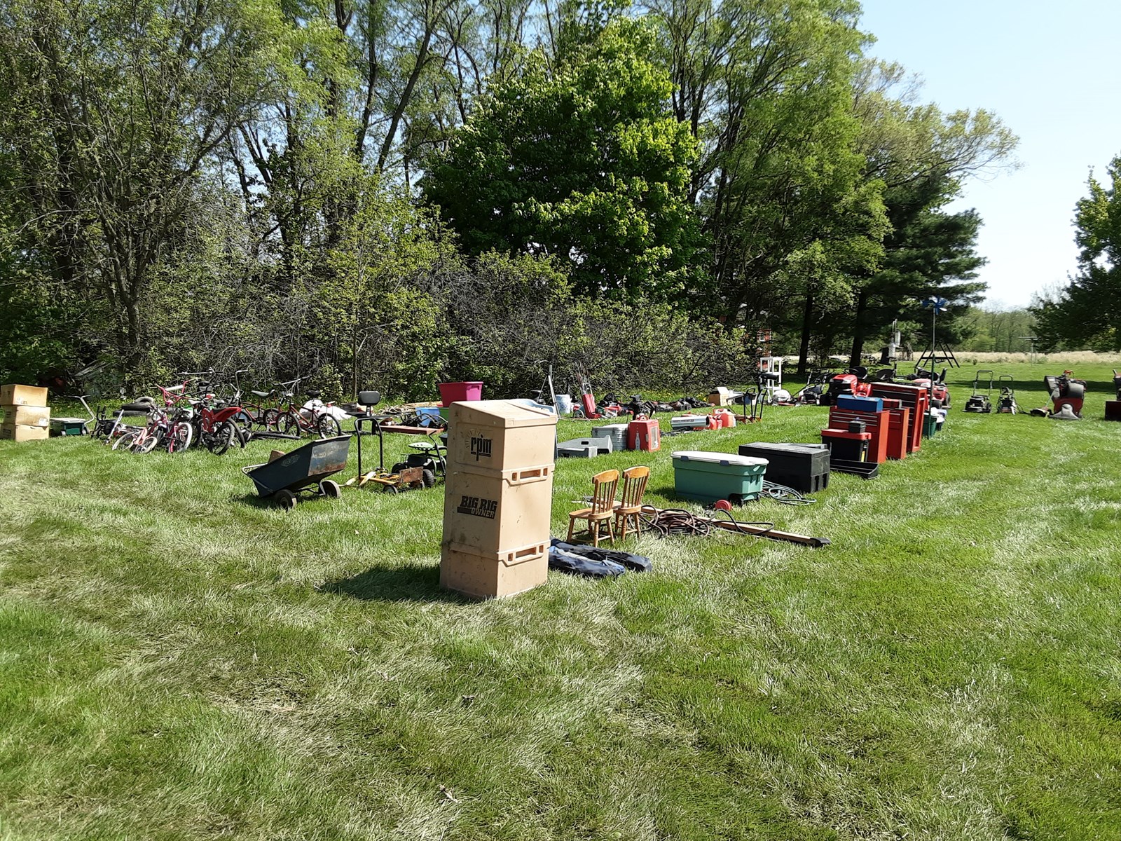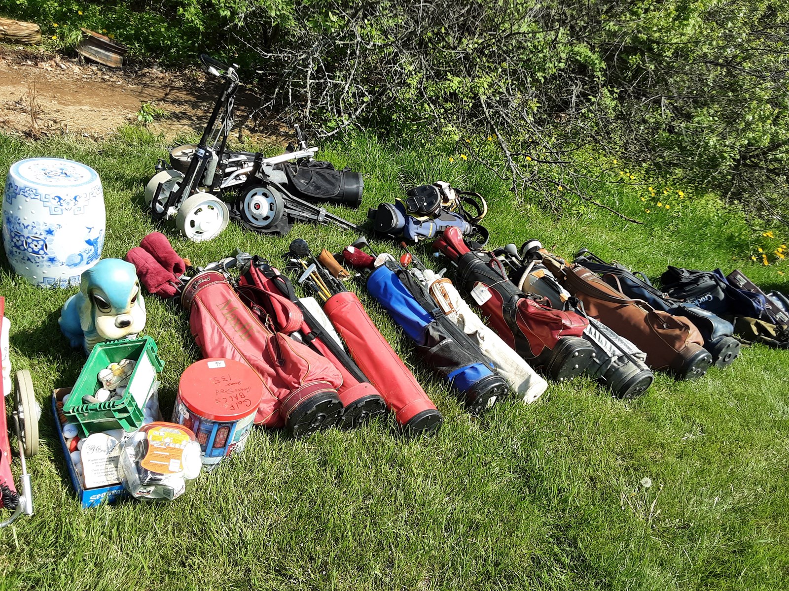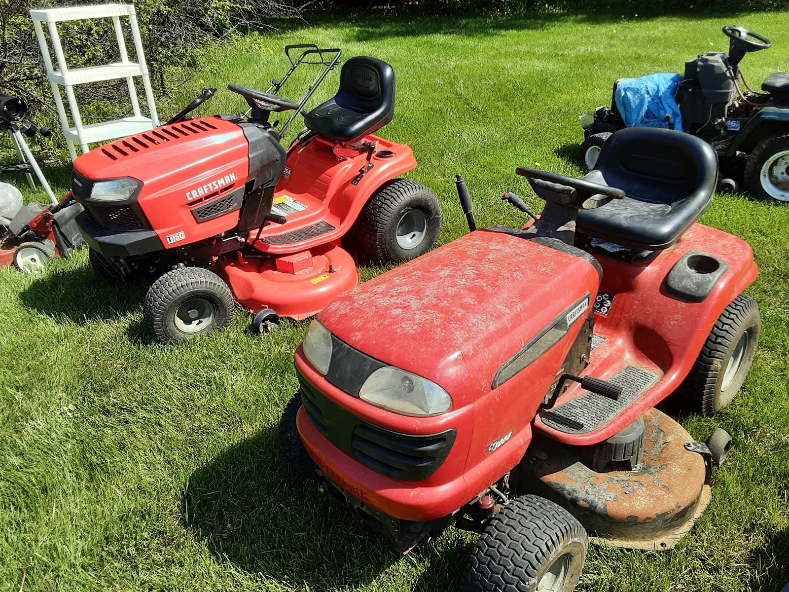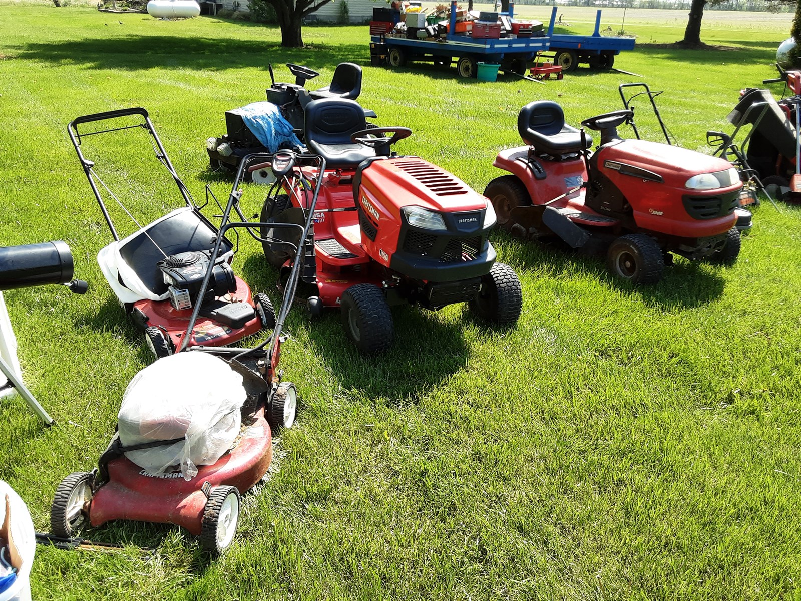 5’x8’ S.A. flatbed trailer; 6’x12’ S.A. steel floor trailer; 15’ canoe; kayak; 13’ alum. john boat; 21’ sail boat w/ S.A. trailer (rough); INGERSOLL RAND 4 seat golf cart (not running); YARD SPORT 4x2 golf cart-ys 200 w/ ROPS; CLUB CAR gas golf cart w/ frt. windshield; Carry On 5’x10’ metal utility trailer w/ ramp; VEHICLES/CYCLES: ’03 FORD EXPLORER XLT w/ reese hitch, 4Dr., leather interior, 5 pass.; ’93 FORD RANGER XLT pickup, reg. cab- (for parts); p.u. bed trailer; 7’10”x20” HOLIDAY TRAVELER B.H. travel trailer; Craftsman: 7.75 HP 26” snowblower; LT 3000 lawn tractor w/ 42” deck; EZ walk behind mower; chipper/shredder; HONDA’S: ’86 Honda Gold Wing 1100 w/ saddle bags, tour pkg., 33,362 mi.; Honda CM400A Hondamatic, showing 16,757 mi., Neither units running; kids 4-wheeler; Toro 6.25 hp push mower (like new); Reese hitch carrier; straight & curved shaft weed trimmers; dog kennel; Quantity of 2’x4’s; etc.
