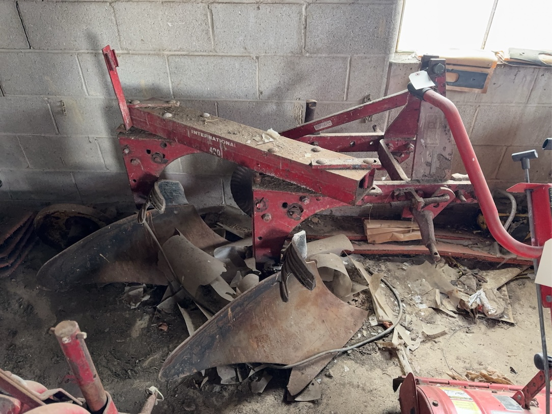 baler; M&W rotary hay rake; International 420 2-btm. plow (like new, all