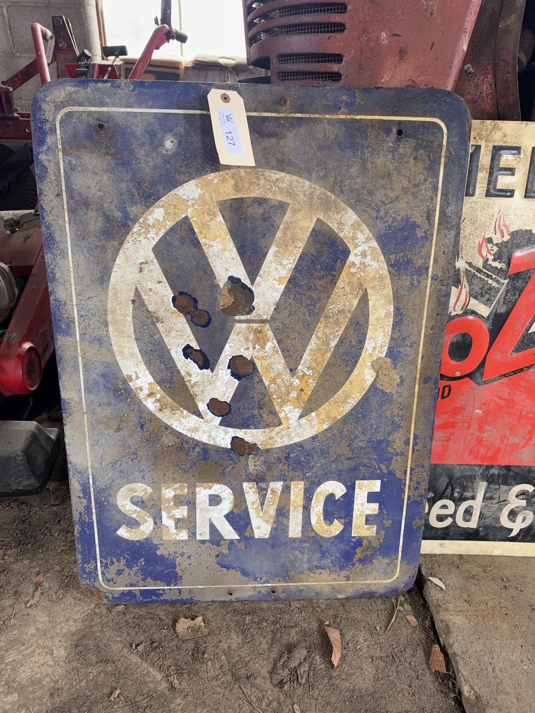 ‘Volkswagen Service’ porcelain sign; Dayton Feed & Supply sign; additional