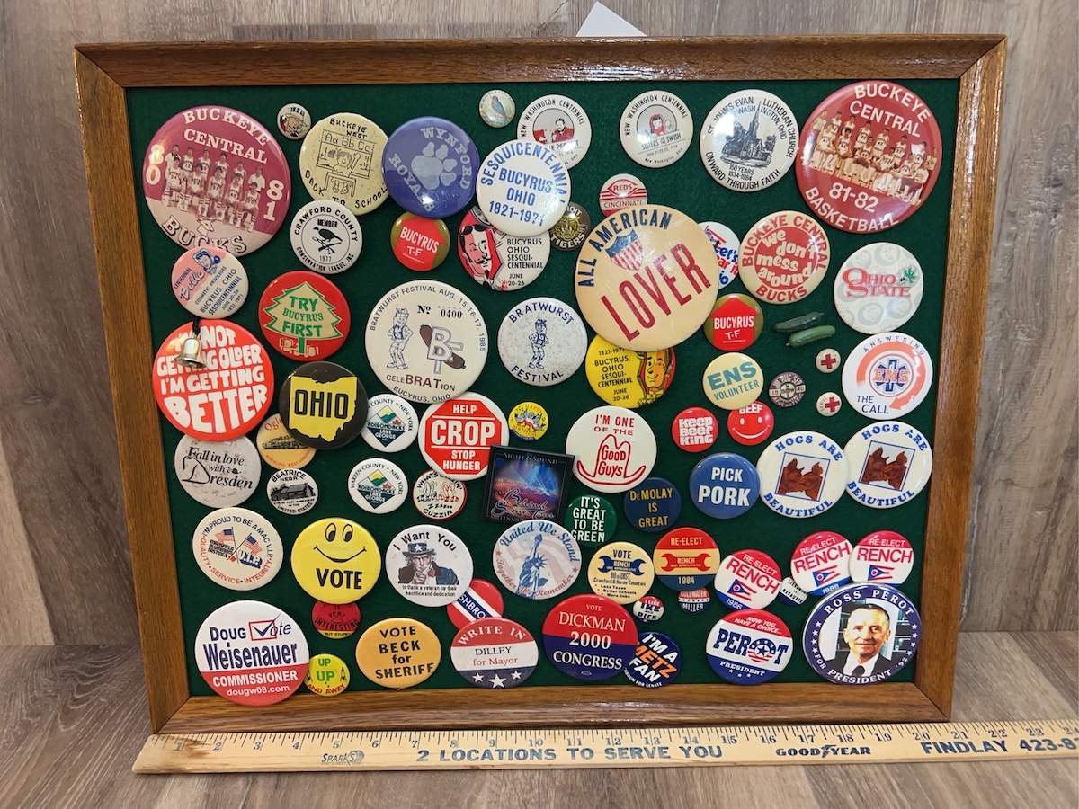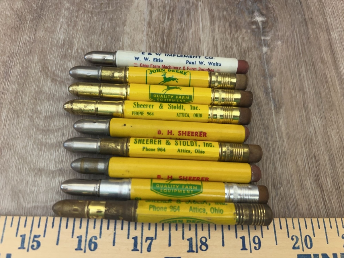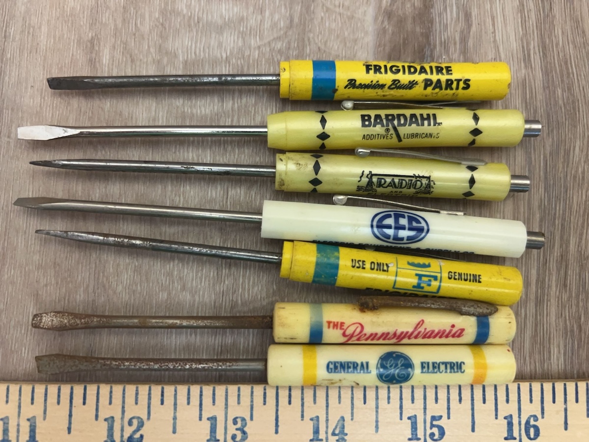 Memorabilia Lots: Local & State Advertising Memorabilia- Bullet Pencils, Yardsticks, Advertising Pins, Rain Gauges, Thermometers, Hats, Pencils, Screw Drivers, Tape Measures, Matchboxes, Pocket Ledgers, Pens, Keychains, Fans, Buttons, Jars, Bottles, collector spoons & more.