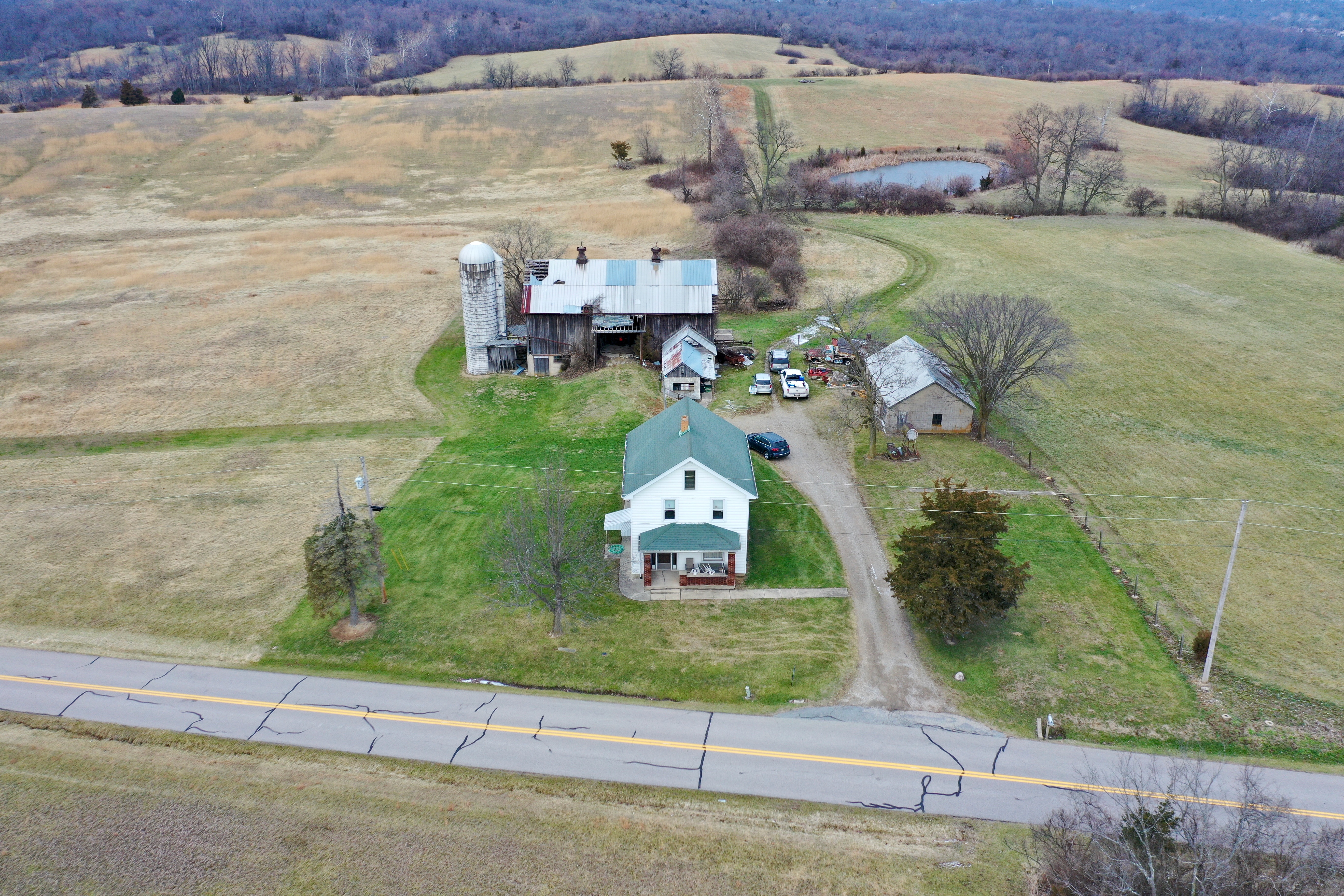 Tract #4: Features a clean, well-maintained country home offering over 1,600 square feet of living space with 3 bedrooms and 1 bathroom, situated on 5.02± acres. Improvements include an older gable-roof bank barn along with several additional outbuildings, providing excellent utility for storage, hobby farming, or livestock. A classic rural setting with ample space and functionality.