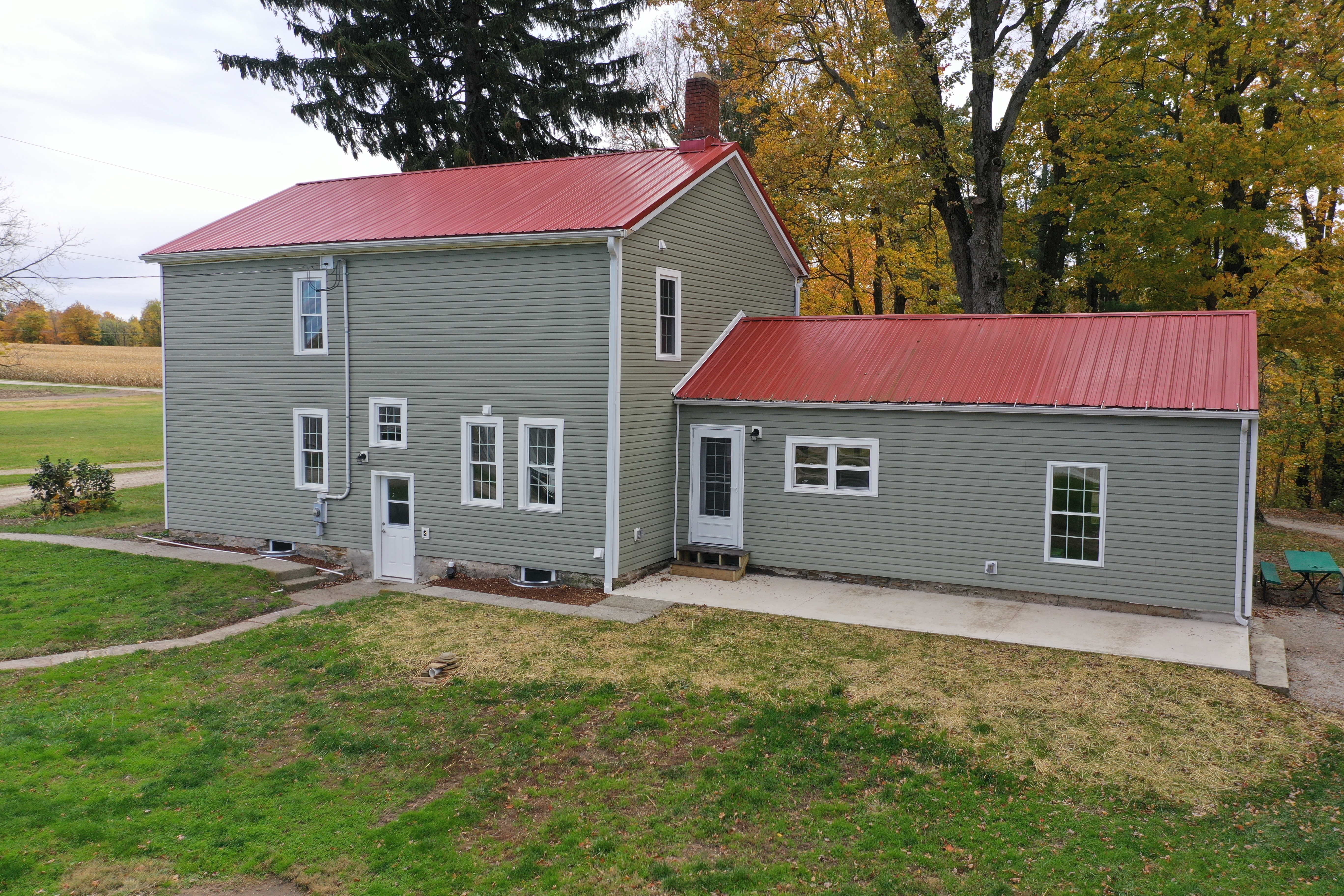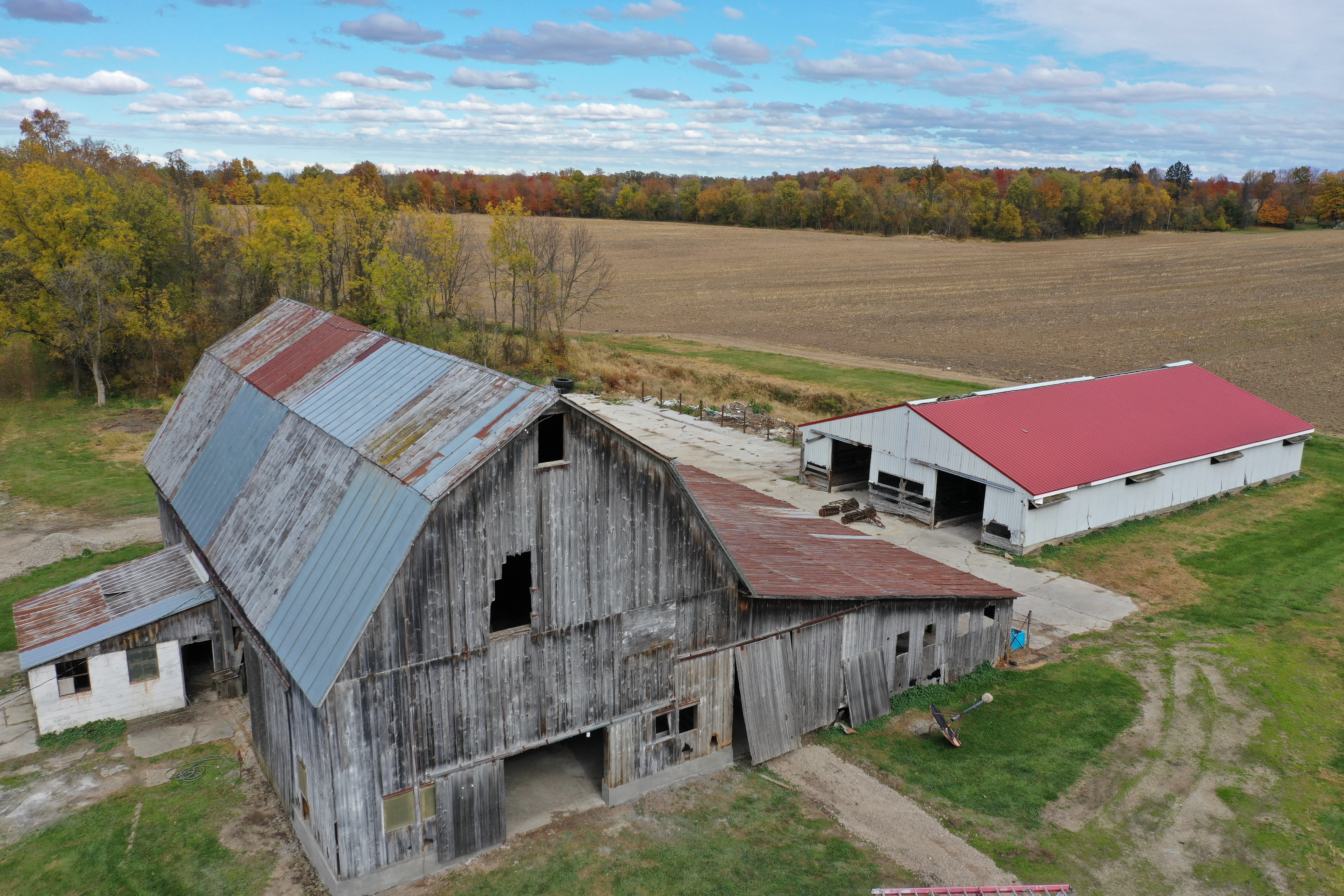 The homestead features a completely remodeled 2,124 sq. ft. home offering 4 bedrooms and 2 bathrooms, finished with care and never lived in. A large traditional hip-roof barn adds historic charm and utility, while the 48×80 pole barn provides excellent functional space for equipment, workshop use, livestock, or storage.
