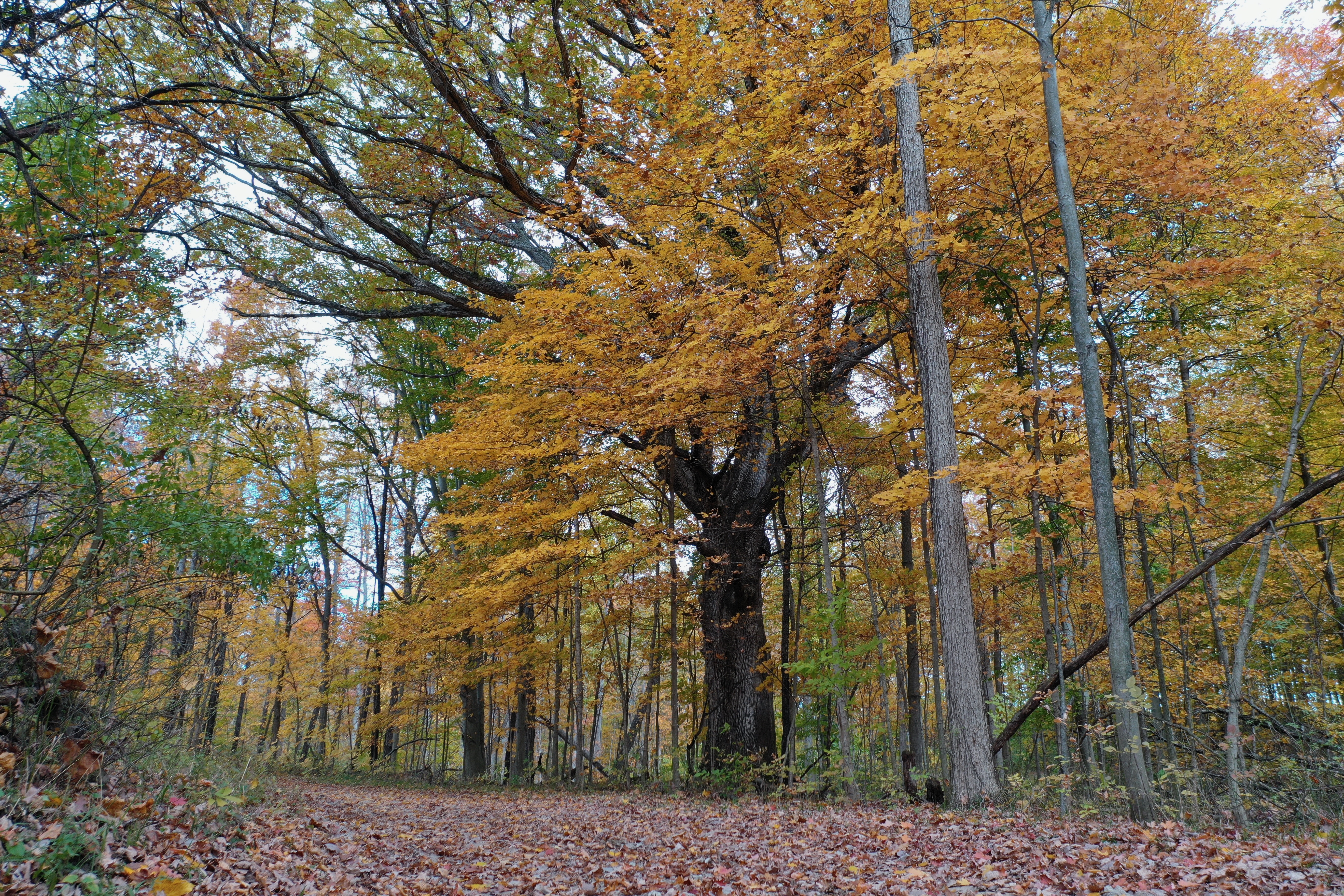 The land surrounding the home is truly impressive. Over 100± wooded acres of rolling terrain overlook the scenic Huron River, with approximately 2 miles of manicured trails winding through mature and diverse hardwoods including poplar, beech, maple, cherry, walnut, and anchored by a magnificent white oak measuring nearly 18 feet in circumference.